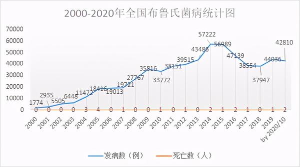 布鲁氏菌感染引起的疾病被称为布鲁氏菌病(Brucellosis, 简称布病),也叫地中海弛张热,或马耳他热,乙类传染病,北方牧区往往是重灾区,十几年来,感染呈上升趋势,且从北往南扩展。根据全国法定传染病统计数据,近年布鲁氏菌病发病率一直维持在较高水平(如图)[4,5]。