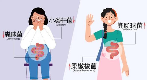 2019年发表于Nature Microbiology的一项研究,分析了超过1000人的粪便微生物,发现产丁酸的柔嫩梭菌(Faecalibacterium)和粪肠球菌(Coprococcus)始终与较高的生活质量指标相关,而抑郁症患者肠道菌群中明显缺少小类杆菌(Dialister)和粪球菌(Coprococcus spp)两种菌属。