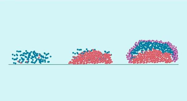 高分辨率的三维成像结果显示,细菌们入侵牙齿堪称精密有序。蛀牙常见一种“半球状”结构:致龋主角变形链球菌不仅集中成堆黏附在牙齿表面,其周围是口腔链球菌等其他细菌,看起来像“驻守边疆”,它们还分泌出各种糖分子形成保护层,分隔细菌层与口腔环境。